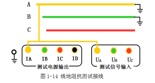 線地阻抗測(cè)試時(shí),例如測(cè)量線路A相對(duì)地間的阻抗: