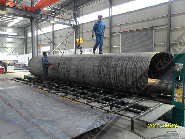 掛車用卷板機增加托輥及上輥撓曲補償可使筒件取得較好的直線度??稍黾油馔辛霞芗皟?nèi)升料架使操作更便利,更少人工??膳浜锨昂蟮拦ば蜃魃a(chǎn)線優(yōu)化使用。