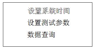 2.3.1、開機LOGO,按【菜單】鍵進入主菜單。主菜單有三個選項:“設置系統(tǒng)時間”“設置測試參數”和“數據管理”。