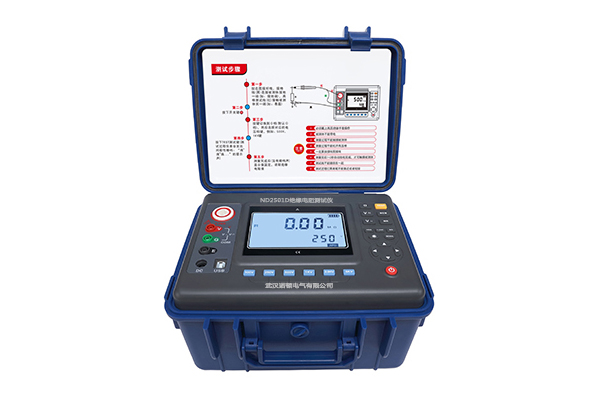 ND2501D數(shù)字絕緣電阻測試儀又名兆歐表、高壓絕緣電阻表,用于絕緣電阻的測試。本儀表具有大屏幕LCD灰白背光顯示、數(shù)據(jù)存儲、數(shù)據(jù)查閱、報(bào)警、自動放電、充電、自動關(guān)機(jī)等功能。同時(shí)還具備測量直流電壓交流電壓吸收比和極化指數(shù)功能。整機(jī)美觀高檔,量程寬廣,分辨率高,操作便捷,攜帶方便,準(zhǔn)確、可靠、性能穩(wěn)定,輸出功率大,抗干擾能力強(qiáng)。